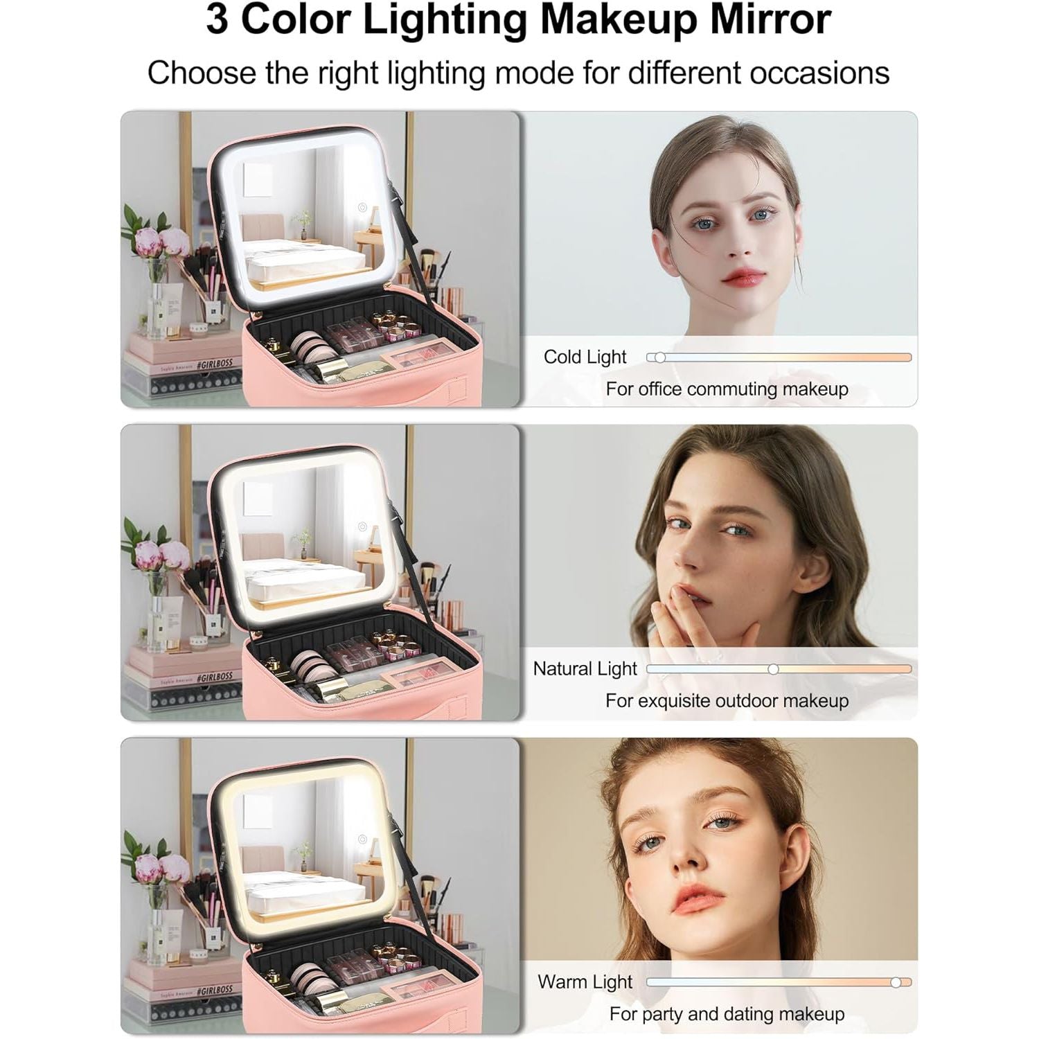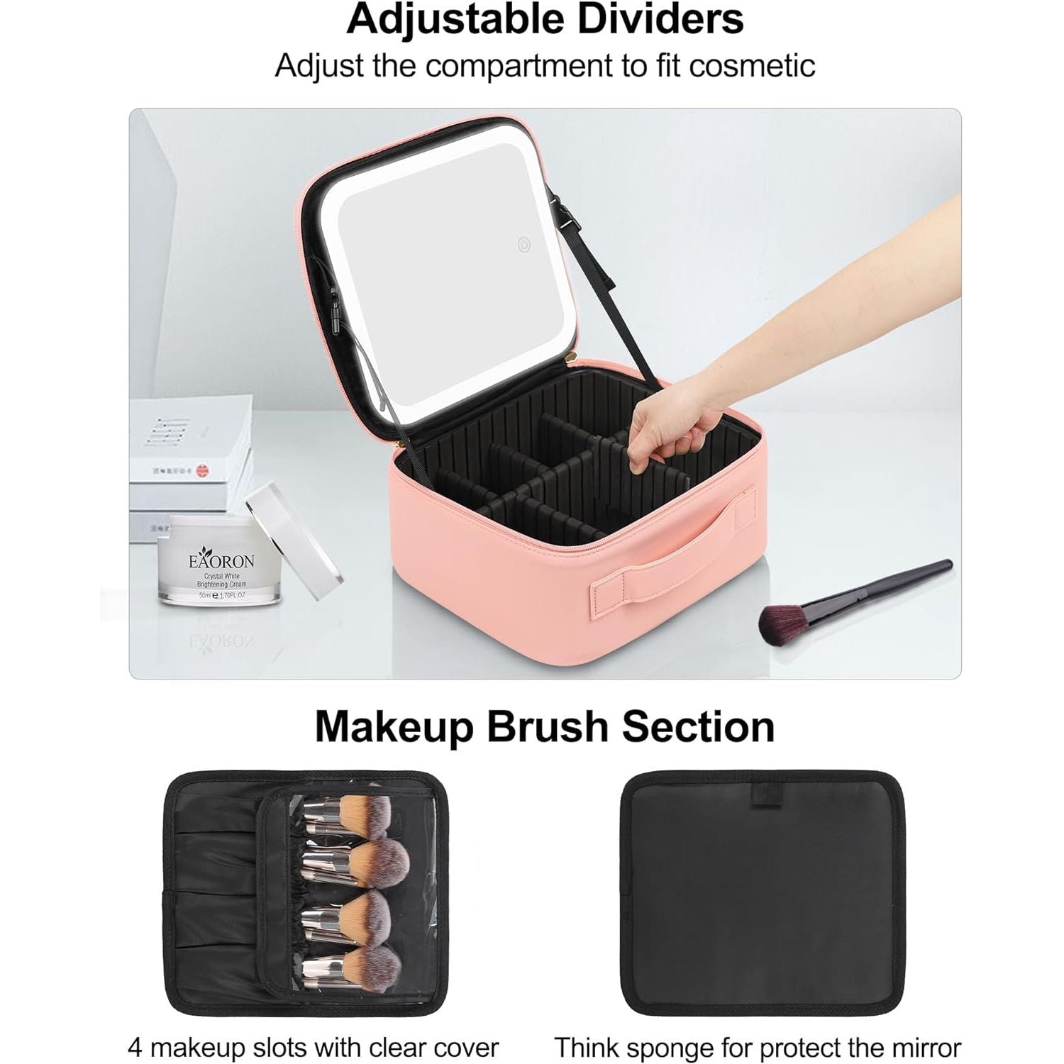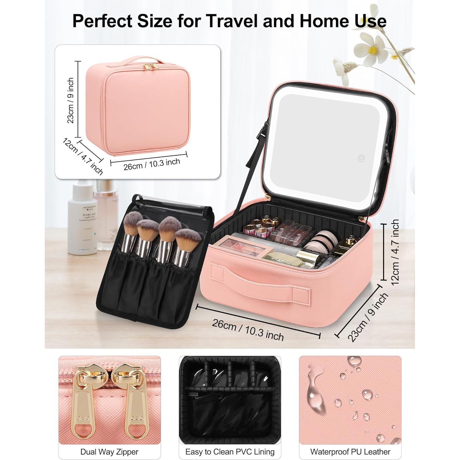 Makeup Bag with LED Mirror, Travel Makeup Case for Women