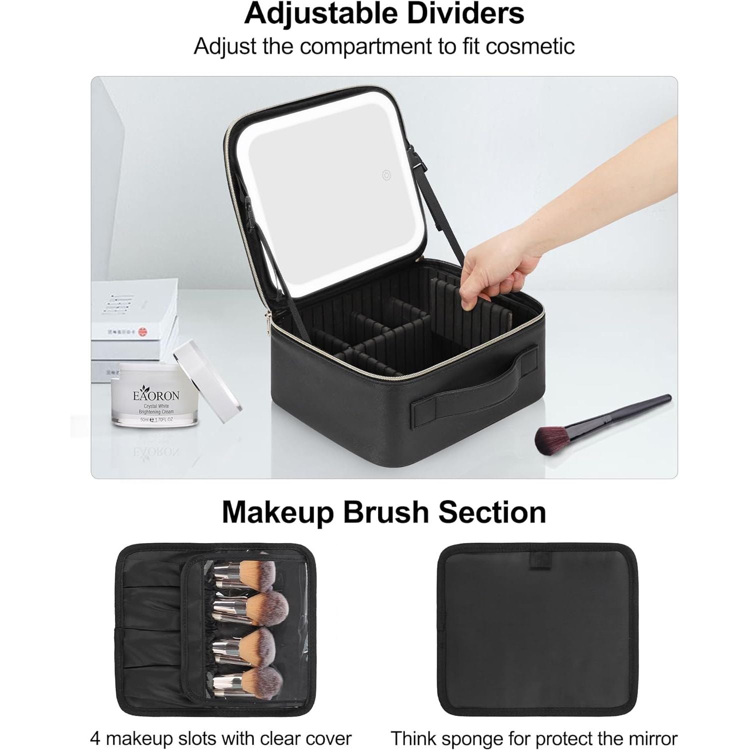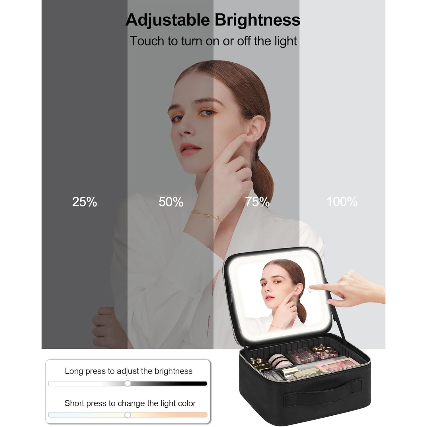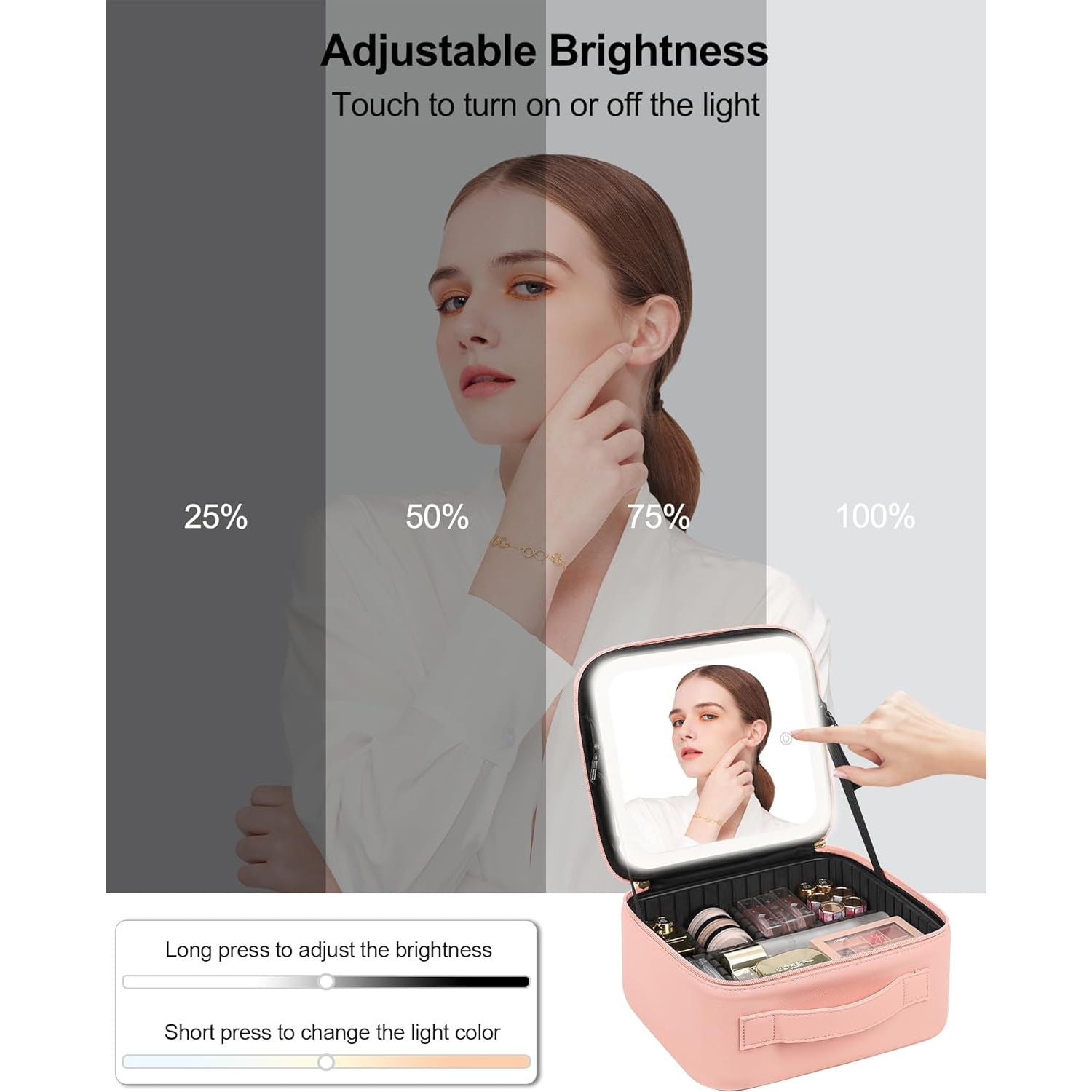 Makeup Bag with LED Mirror, Travel Makeup Case for Women