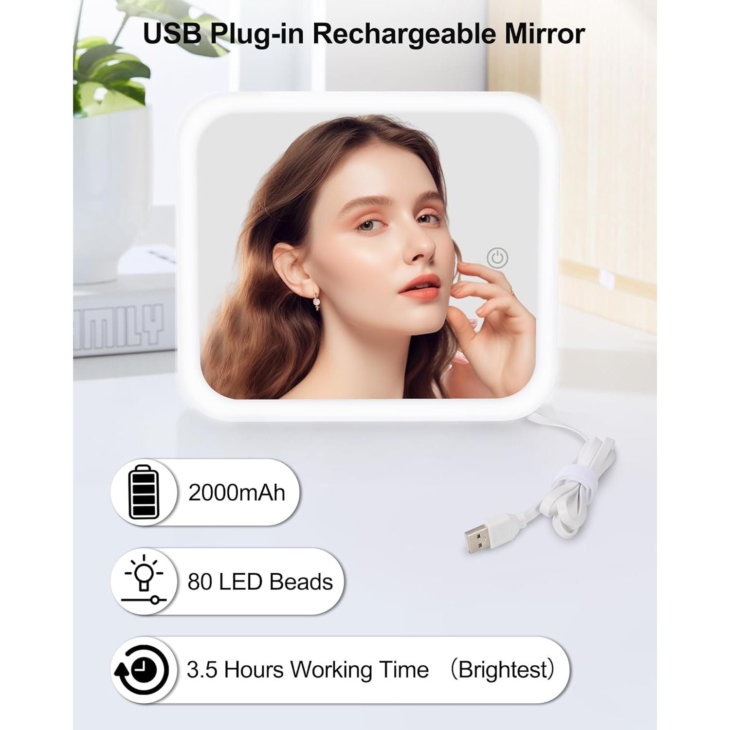 4.Ideal Travel Companion: The makeup bag is made of high quality PU leather, durable and waterproof, with dual way smooth zipper and easy to clean lining. Lightweight and sturdy handle makes your carrying comfortable, you can put it into your suicase as well. What You Get: Makeup bag, 6 Pcs adjustable dividers, USB rechargeable makeup mirror (80 LED Beads, 2000mAh), USB charging cable.