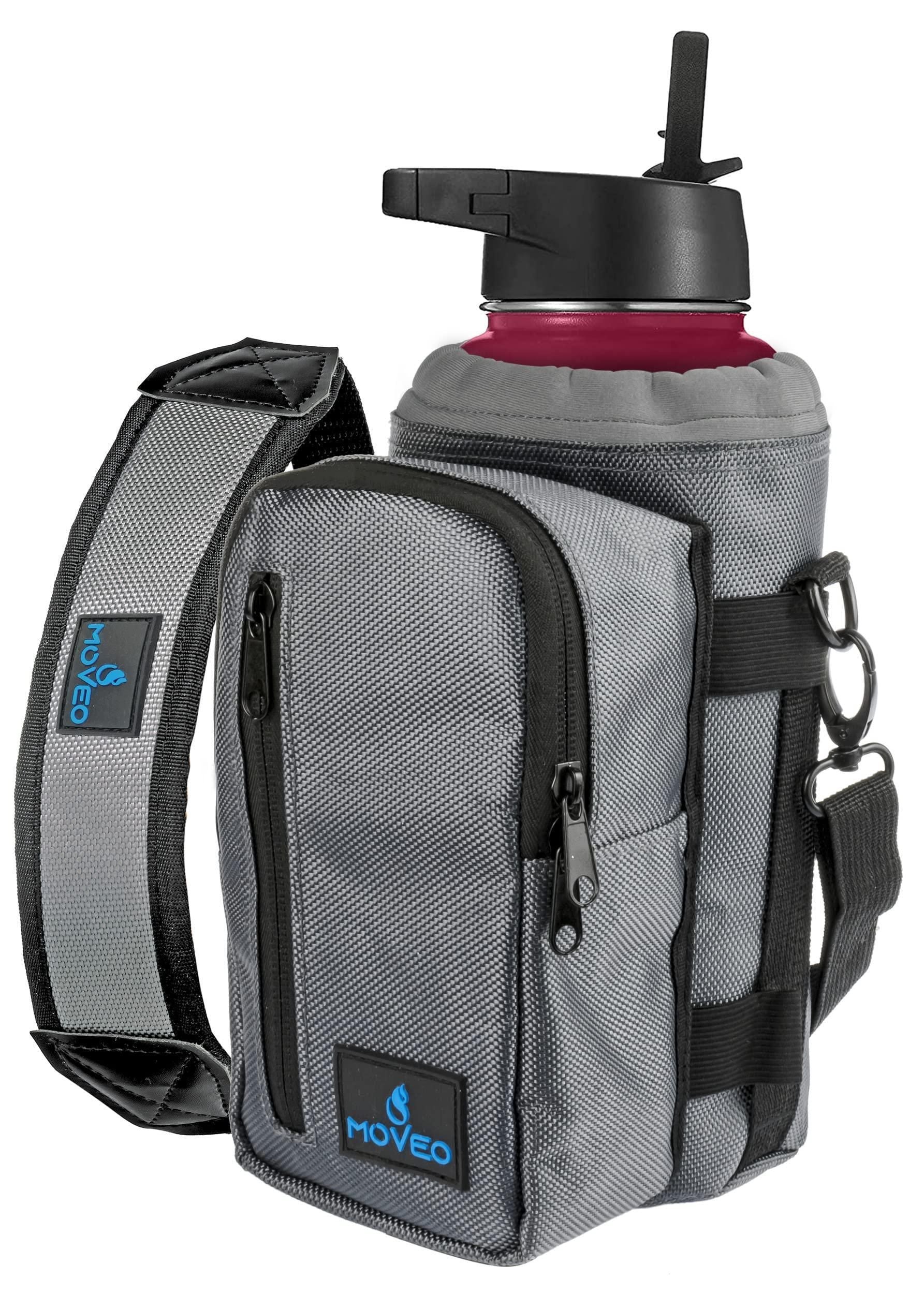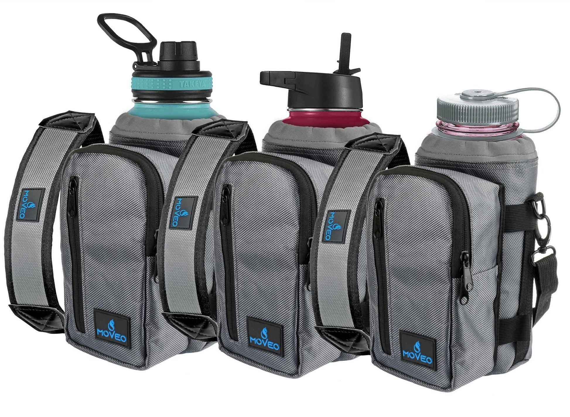5.easy carry water bottle holder water bottle carrier with strap that is long, adjustable, and padded for comfort, 1" width, 40" long, extends to 64". ideal length for carrying as a water bottle crossbody bag or as a water bottle shoulder strap for easy hands-free transport. there are also side water bottle straps for hand-carrying or attaching things when you need to. engineered and yested to withsdantd hard conditions. this water bottle koozie sleeve is true edc gear (every day carry)