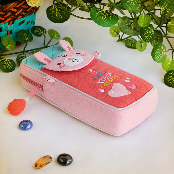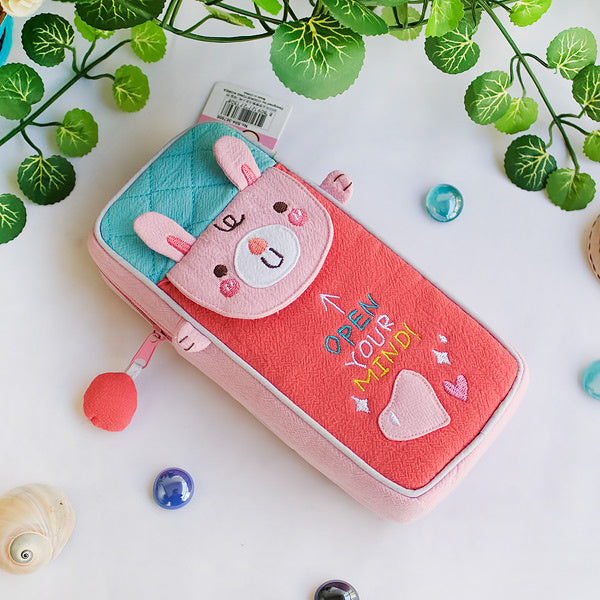 [Love Rabbit] Embroidered Applique Pencil Pouch Bag / Cosmetic Bag / Carrying Case (3.1*7.8*1.6)