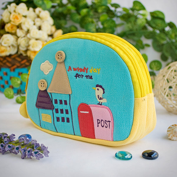 [A Windy Day] Embroidered Applique Cosmetic Bag / Camera bag / Hand Purse Wallet (7.1*5.1*2.8)