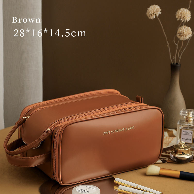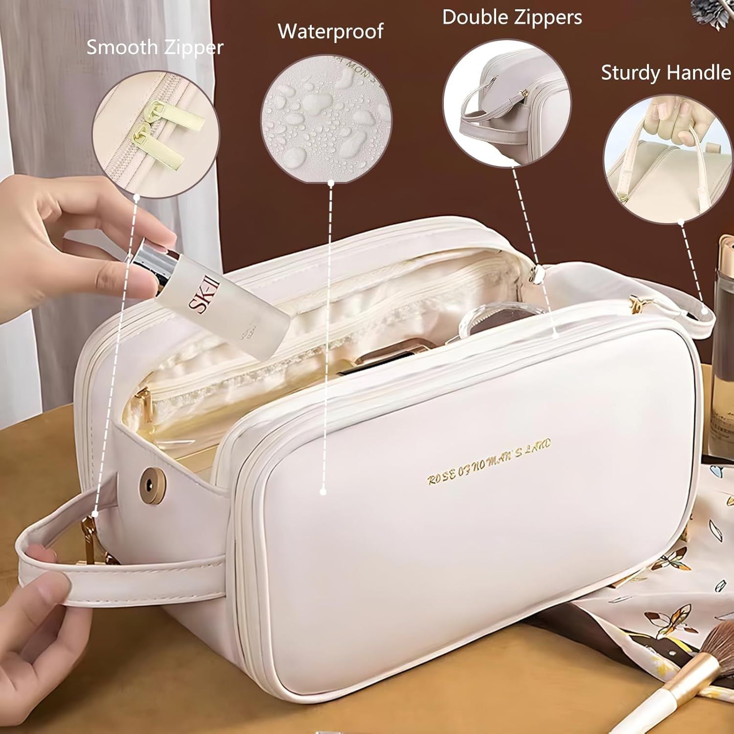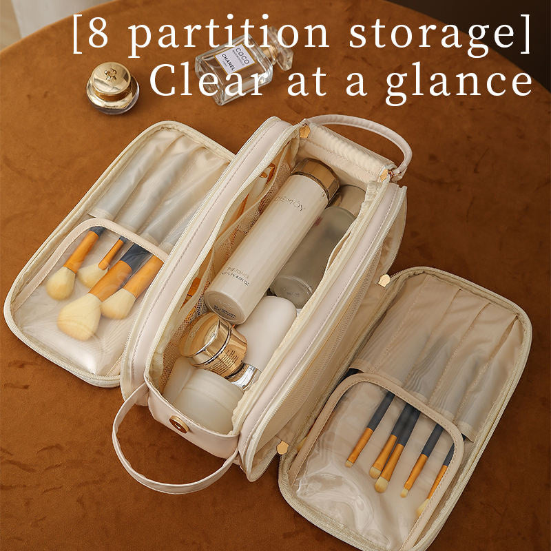 [Large capacity]: Measures 11"x6.3"x6.1" (LxWxH) , with multiple compartments for all your storage needs. 1 large capacity main compartment to organize all your travel essentials and multiple built-in compartments for powders, eyeshadows, lipsticks, etc. 2 PVC side pockets for makeup brushes or other tools. Whether for short trips or daily use, this makeup bags is a perfect choice.[Double-sided, fully open design]: Easily access your makeup quickly. This makeup bag features individual sections that also provide some protection for your essentials. It's easy to pick up and go.[Portable and Travel-friendly]: Lusiauh cosmetic bag is compact and lightweight, perfect for travelling, business trips, camping and the gym.[Waterproof]: The fabric is made of high quality waterproof PU leather, which is easy to clean and can effectively protect the internal items from moisture.[Multifunctional bag]: The Lusiauh Cosmetic Bag is perfect for traveling and can also be used as a toiletry bag, travel accessory bag, storage bag or skin care bag. Its exquisite design and practicality also make it a great gift choice for holidays such as Christmas, Birthday, Thanksgiving or Valentine's Day.