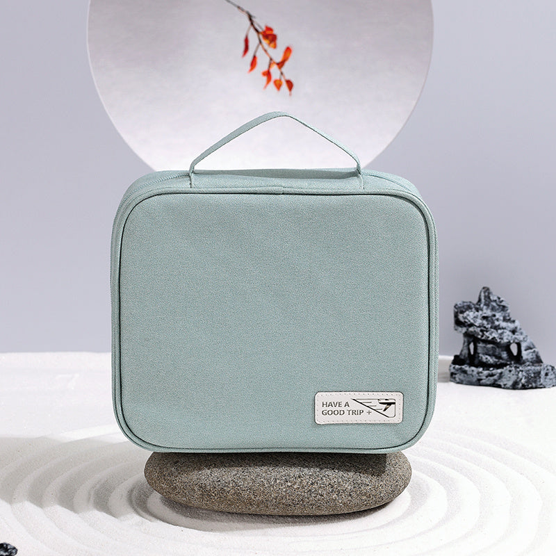 Divide and conquer your cosmetic collection with this easy-to-organize travel makeup kit. Multi-compartment, decorated with lots of brush slots and a zip wall pocket, make this cosmetic case as roomy or separated as you desire. Top handle make it a cinch to carry or hang over a door. With many great ways to access, separate and organize your toiletries, this cosmetic bag makes your life easier.