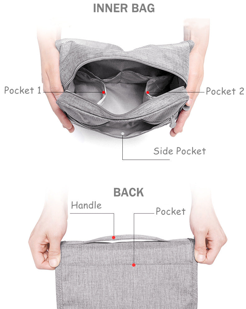 3.Compact but well designed with handle, hanging hook and multiple pockets.