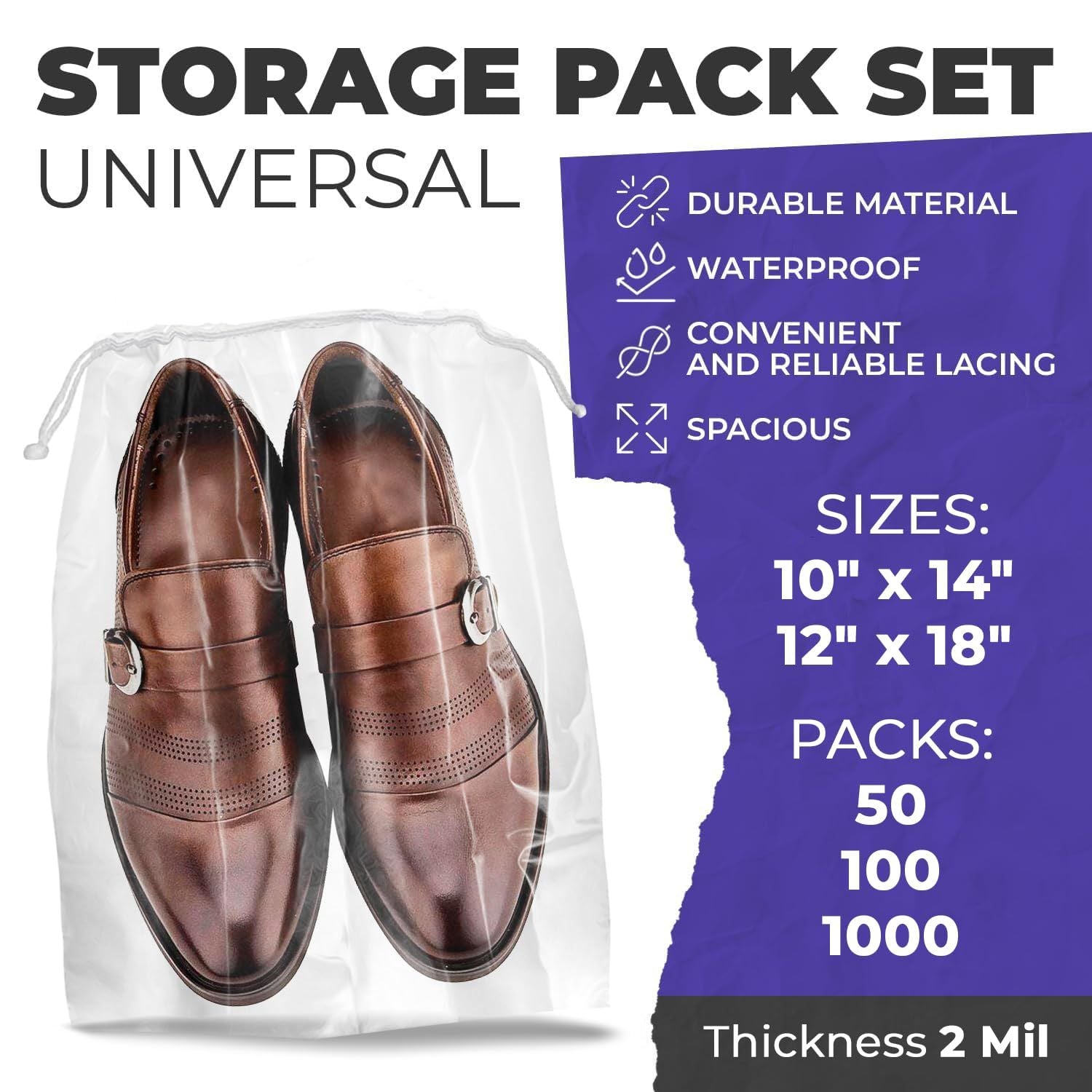 1.Pack of 50 Clear Drawstring Bags, 12 x 18 Inches. Transform your travel experience with plastic drawstring bags that effortlessly keep cosmetics separate from clothes, ensuring a neat and clean suitcase every time.